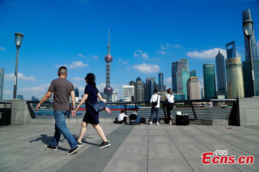 Pedestrians in summer clothes visit Shanghai Bund, November 18, 2020. The highest temperature reached 27.2 ℃, breaking the previous mid-November 24.2 ℃ record. (Photo: China News Service/Tang Yanjun)