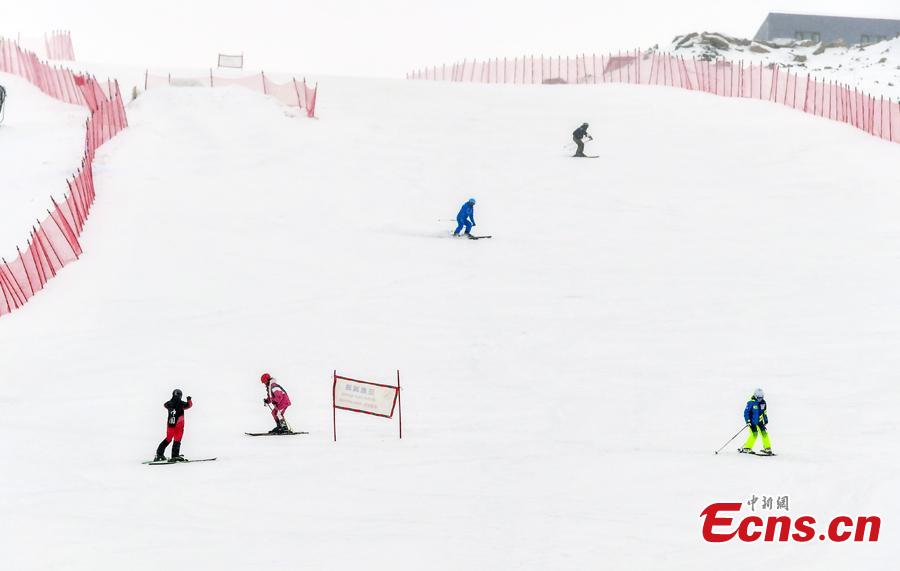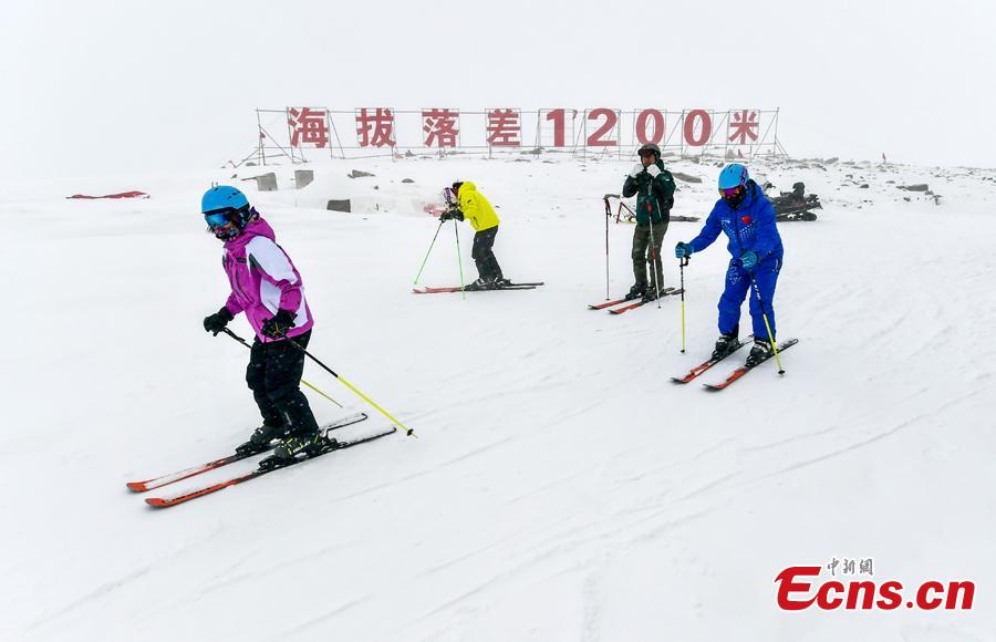This photo taken on Dec. 10, 2020 shows people skiing at the Keketuohai International Ski Resort in Fuyun County, Altay, Xinjiang Autonomous Region. The longest snow track is 9 km in the resort. (Photo: China News Service/Liu Xin)