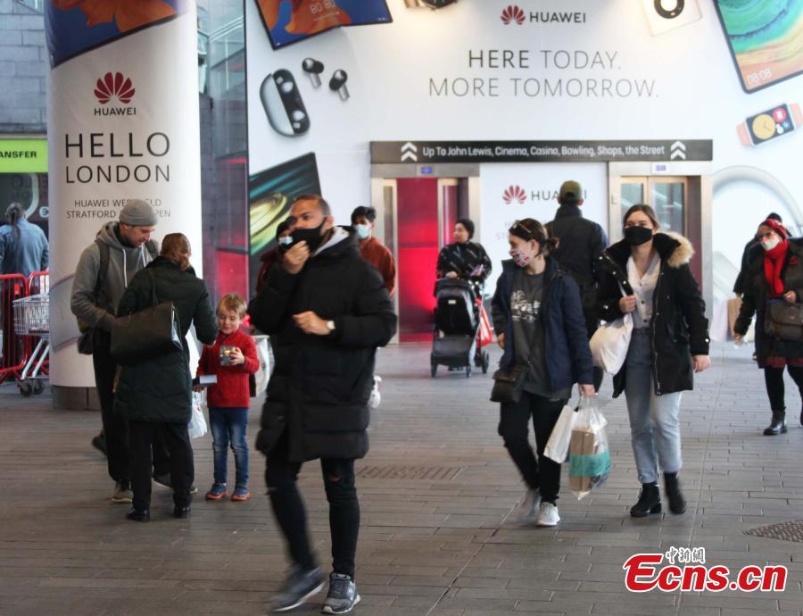 Photo taken on Dec 15,2020 shows Huawei's first flagship store in the UK, which is located in Westfield Stratford City, East London.The store is the first of three long-term leases planned for various locations across the UK for Huawei. A wide variety of products ranging from its smartphones to its “extensive range” of wearable, hearables, tablets and PC products are for sale. (China News Service/Zhang ping)
