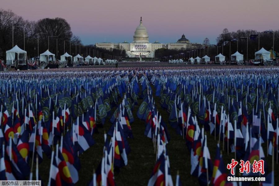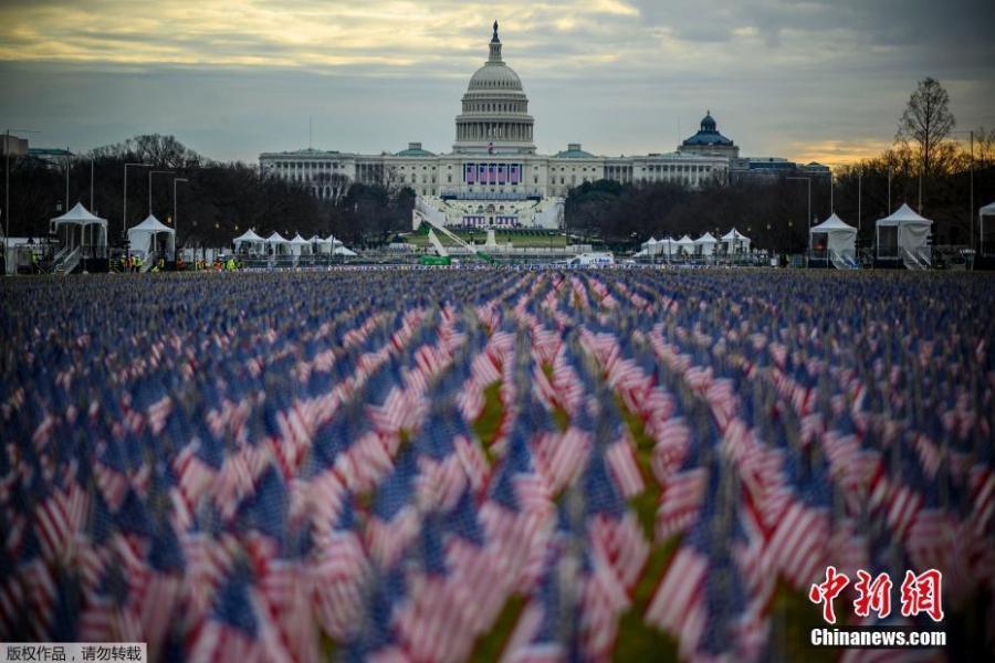 Thousands of U.S. flags are seen at the National Mall, to represent the people who are unable to travel to Washington for President-elect Joe Biden's Inauguration, in Washington, U.S., Jan. 19, 2021. U.S. will mark the inauguration of the 46th president of the United States on Wednesday, two weeks after the deadly insurrection at the U.S. Capitol. (Photo/Agencies)