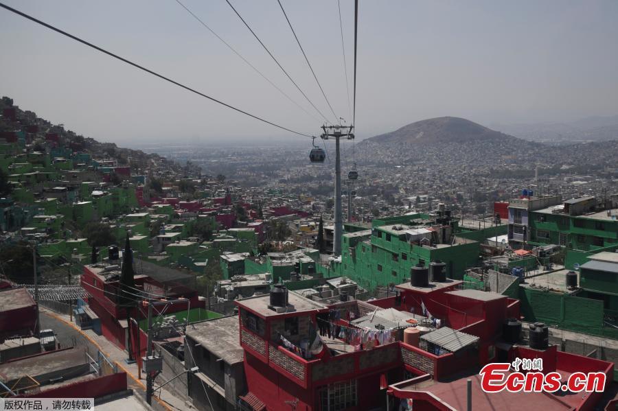 A general view shows the first line of a cable car system dubbed the Cablebus during its inauguration, in the neighbourhood of Cuautepec, in Mexico City, Mexico, March 4, 2021. (Photo/Agencies)