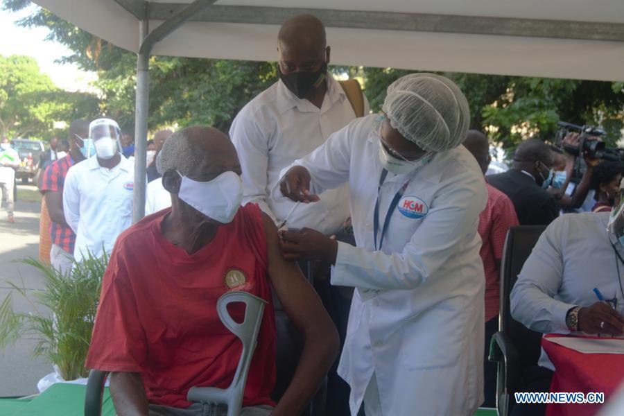 Mozambican Health Minister Armindo Tiago receives a shot of the Chinese vaccine against COVID-19 during the vaccination campaign launching ceremony at Maputo Central Hospital, Maputo, Mozambique on March 8, 2021. (Photo by Israel Zefanias/Xinhua)