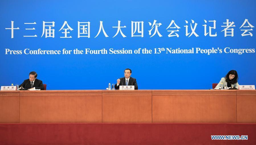Chinese Premier Li Keqiang meets the press after the closing of the fourth session of the 13th National People's Congress at the Great Hall of the People in Beijing, capital of China, March 11, 2021. Li took questions from Chinese and foreign reporters via video link. (Xinhua/Chen Yehua)
