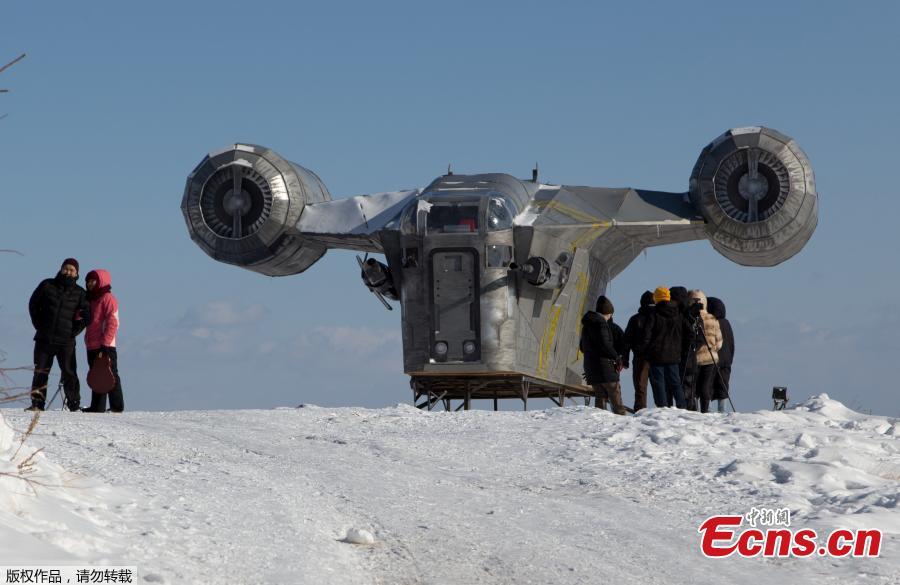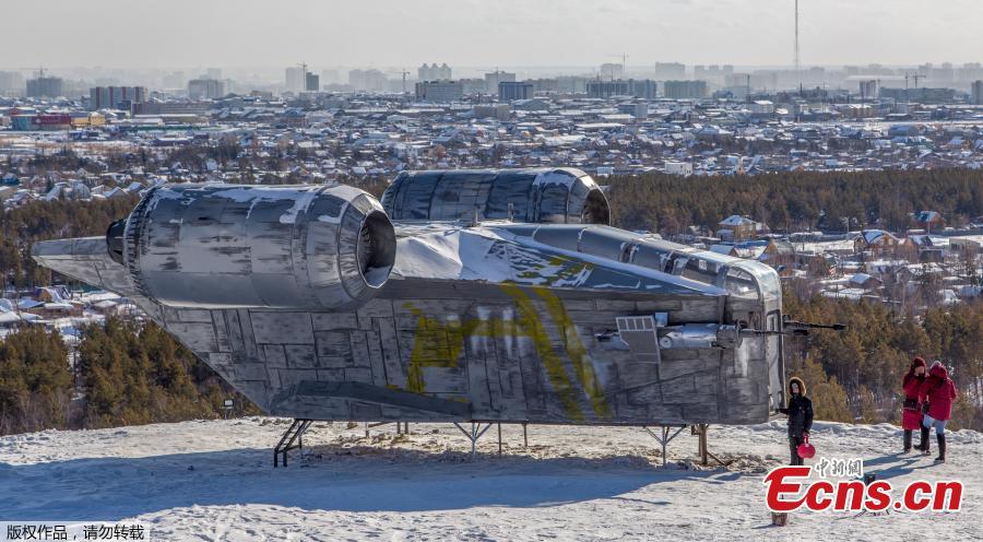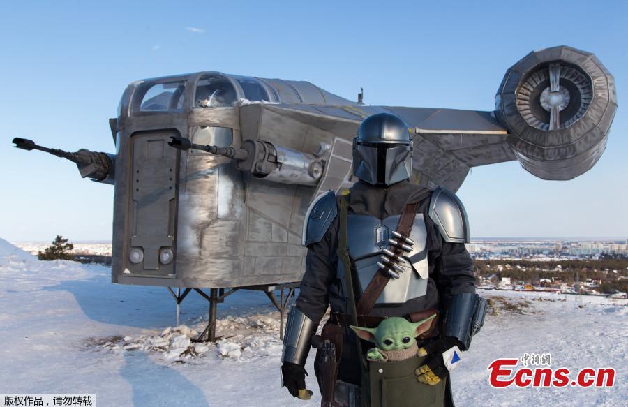 A replica of the Mandalorian spacecraft in the Star Wars is displayed in Yakutsk, Russia, March 14, 2021. The spacecraft weighs over a ton, with a length of 14 meters, a width of 10 meters and a height of 4 meters. (Photo/Agencies)