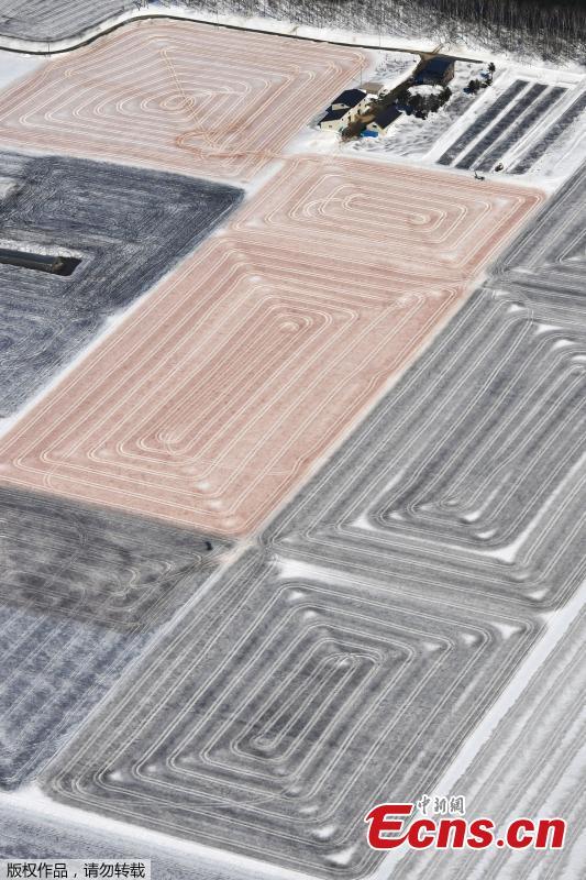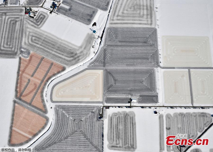 Aerial view of snow-covered farmland in Iwamizawa, Japan, March 15, 2021. (Photo/Agencies)