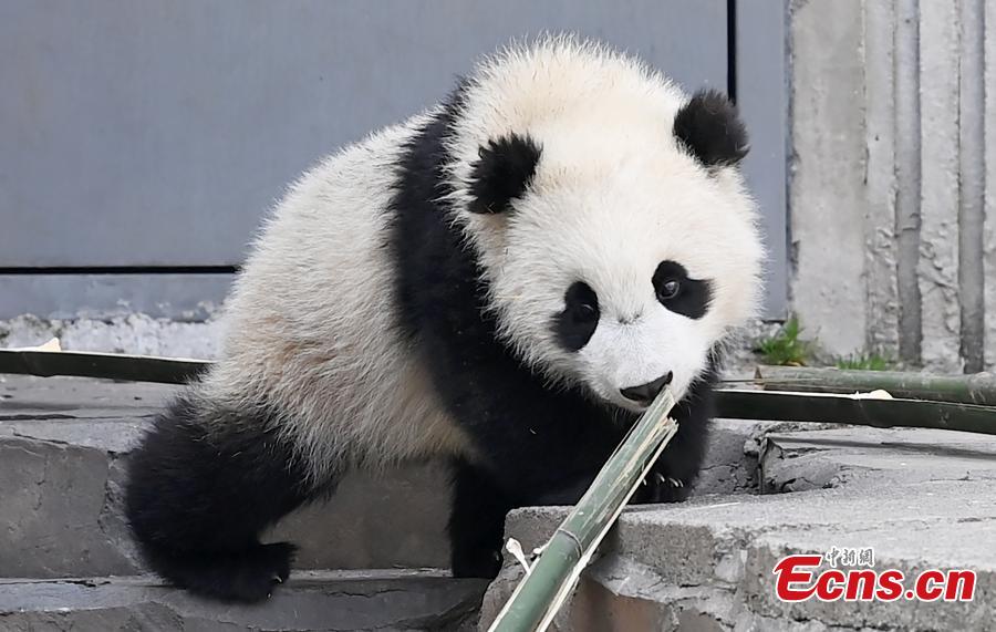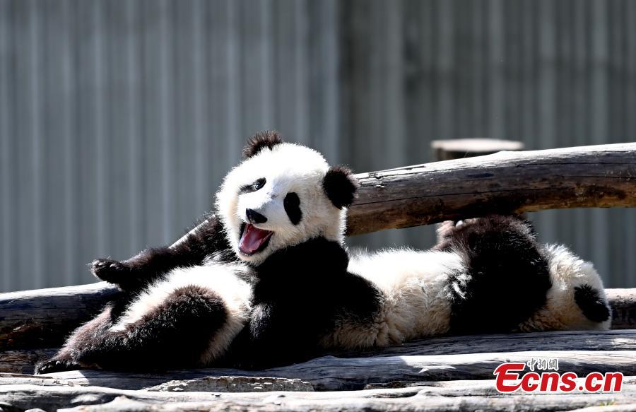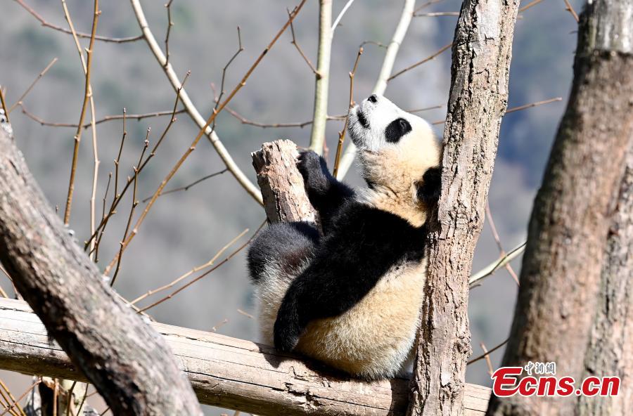 A giant panda cub played at the Shenshuping base of the China Conservation and Research Center for Giant Pandas in Wolong, Southwest China's Sichuan Province, March 15, 2021. (Photo: China News Service/An Yuan)