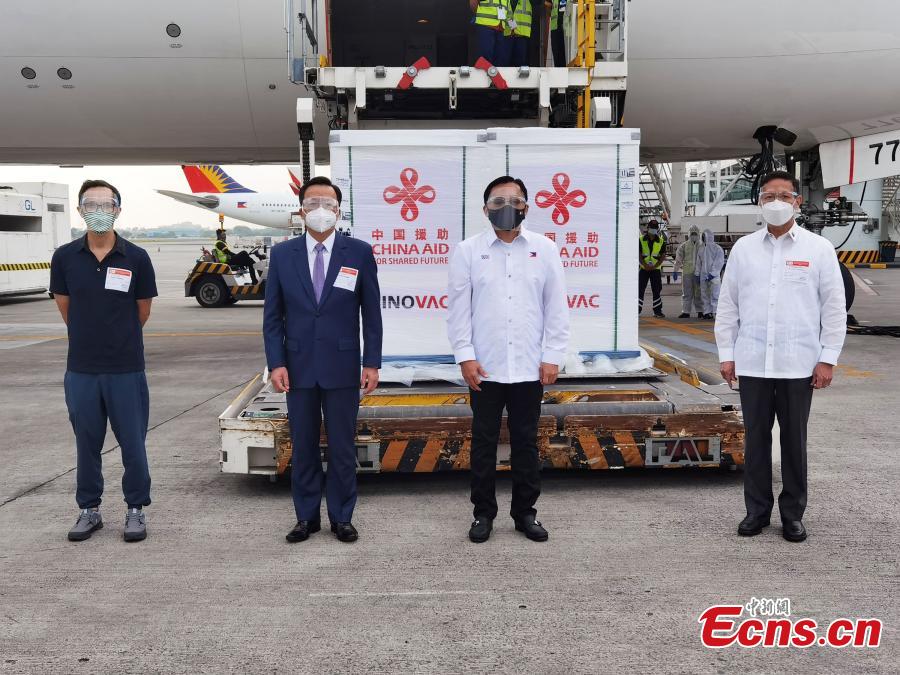 China delivered a first batch of donated Sinovac vaccines to the Philippines on Feb. 28. The 600,000 doses were used on the official rollout of the government's vaccination program in the following day. The Philippines aims to inoculate up to 70 million people this year to achieve herd immunity.