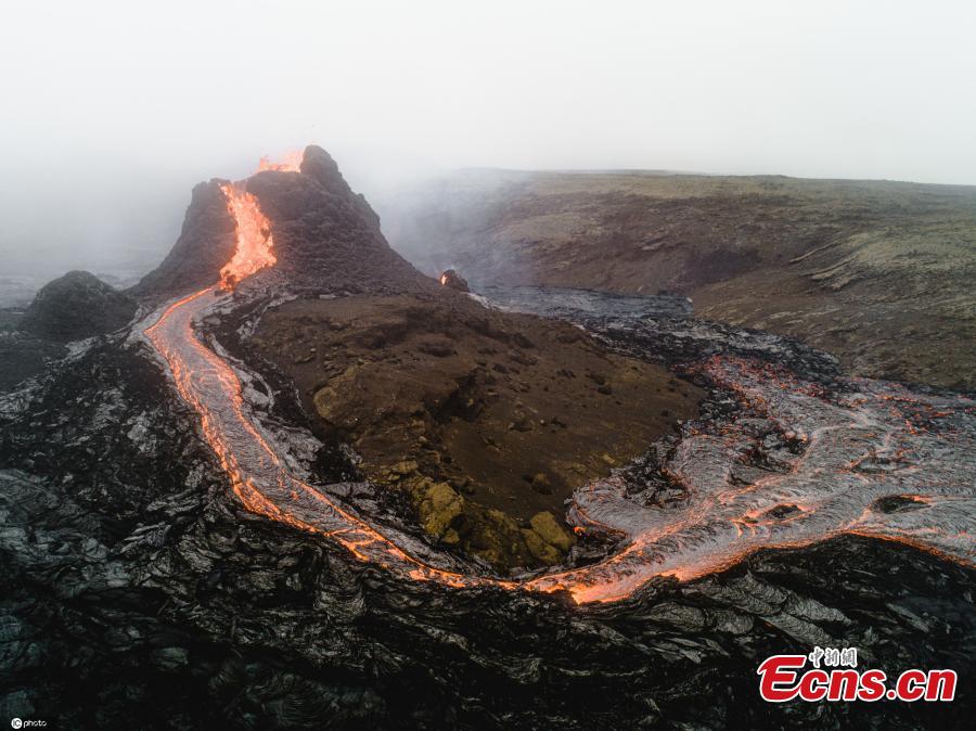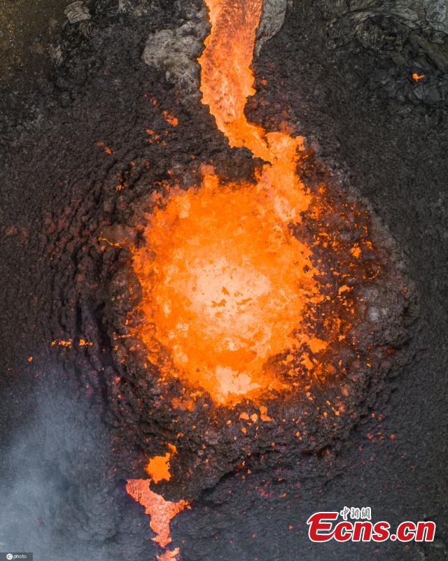 Photographer Joseph Hall from London, UK, and known online as Joe Shutter, used a drone to look into the eye of the craters, Fagradalsfjall, Iceland in this undated photo. Hall was positioned just 150-foot away as the molten lava ran down the volcano's rock face. Over the last year, Fagradalsfjall has been hit by two earthquakes and in March 2021 alone, 40,000 earth tremors were detected in the area. The volcano erupted on March 19, 2021, and has shown no signs of slowing down. This marks the first time the volcano has erupted in 6,000 years and it could continue for many years. (Photo/IC Photo)