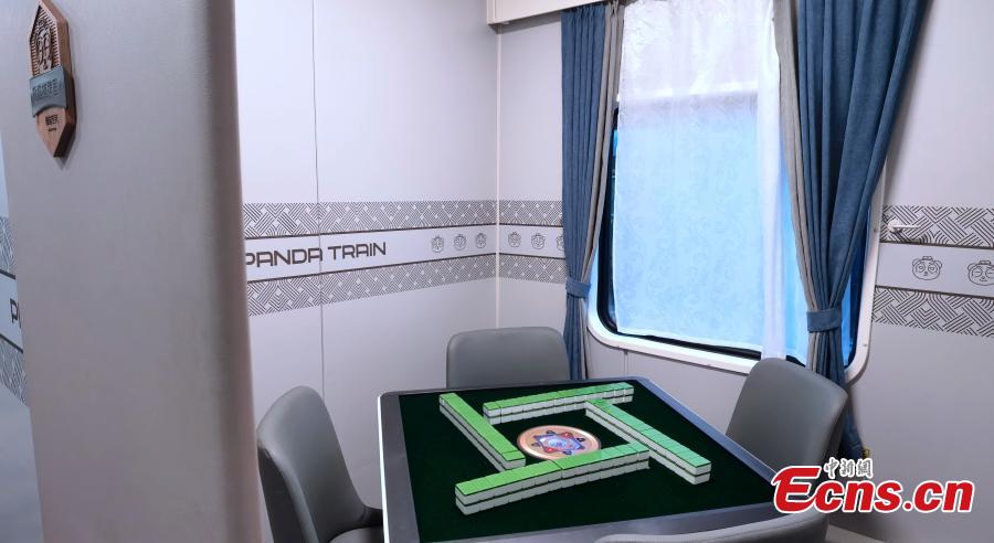 Photo taken on March 28, 2021 shows an entertainment room on the "Panda Train" in Chengdu, southwest China's Sichuan Province. 2021. China's first panda-themed tourist train "panda train" left Chengdu Railway Station for Zunyi, Guizhou province, on Sunday, kicking off a 3-day spring trip. "Panda Train" features an intelligent service system, music and video entertainment system, restaurant and bar, constant temperature shower system and other user-friendly service facilities. It is a mobile hotel integrating transportation, accommodation, catering, entertainment, conference and other functions. (Photo: China News Service/Liu Zhongjun)