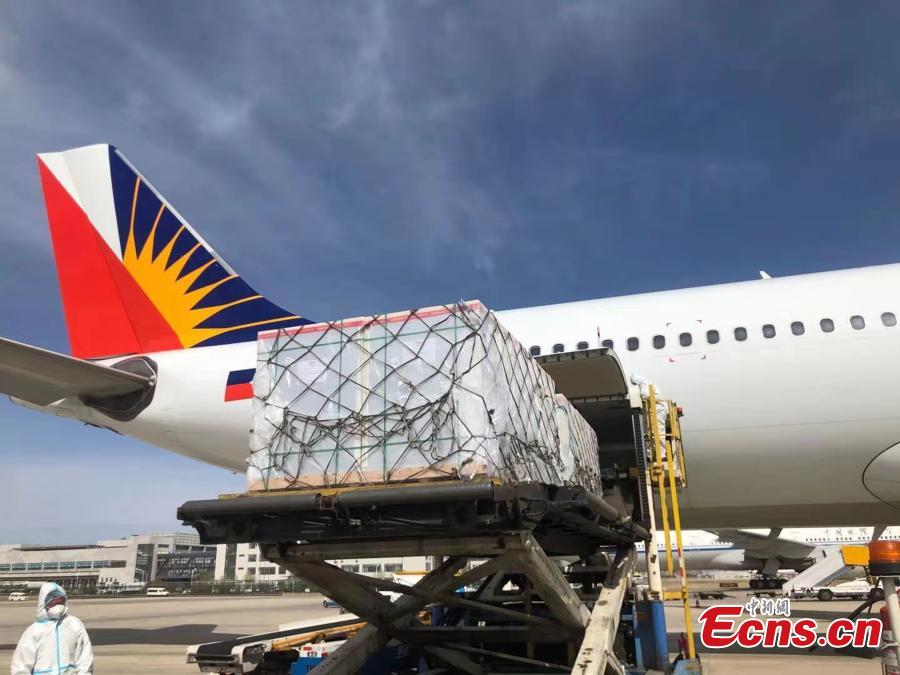 The first batch of Sinovac vaccines purchased by the Philippine government are loaded to the Philippine Airlines flight PR361, March 29, 2021. The vaccines arrived at Villamor Air Base in Manila at 4 p.m. on Monday. (Photo/ Philippine Airlines)