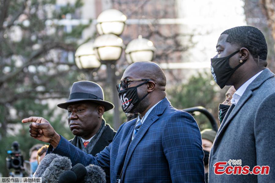 George Floyd's brother Philonise Floyd (C) speaks during a press conference outside the Hennepin County Government Center before the opening statement of former Minneapolis Police officer Derek Chauvin on March 29, 2021 in Minneapolis, Minnesota, as Brandon Williams, George Floyd's nephew (R)and Floyd family lawyer, Attorney Ben Crump (L)look on. George Floyd must receive justice, his family said ahead of opening arguments March 29 in the trial of the white police officer accused of killing the Black man, whose agonizing death ignited protests against racism and police brutality across the United States and around the world. Derek Chauvin, a veteran of the Minneapolis Police Department, faces murder and manslaughter charges for his role in the May 25, 2020 death of the 46-year-old Floyd. (Photo/Agencies)
