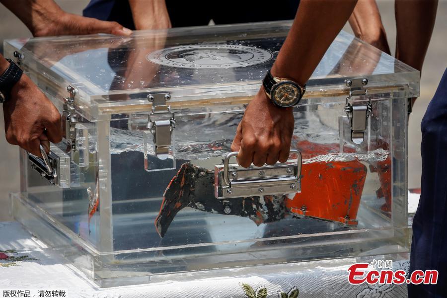 National Transportation Safety Committee (KNKT) officials place the Cockpit Voice Recorder (CVR) of Sriwijaya Air flight SJ 182 on a table at Tanjung Priok Port in Jakarta, Indonesia, March 31, 2021. (Photo/Agencies)