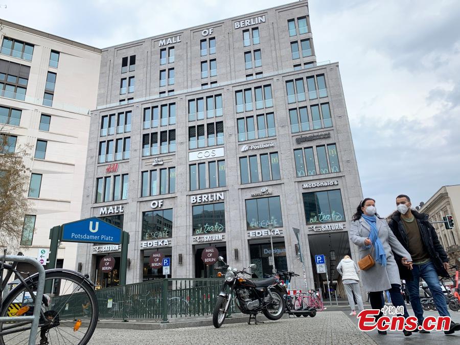 People walk past a shopping center in Berlin, German, April 1, 2021. Germany on the same day reported 24,300 new COVID-19 cases, the country's highest since mid-January this year. Berlin will impose curfew restrictions on overnight travel in the city from April 2, and further tighten prevention measures after Easter, the government said. (Photo: China News Service/Peng Dawei)
