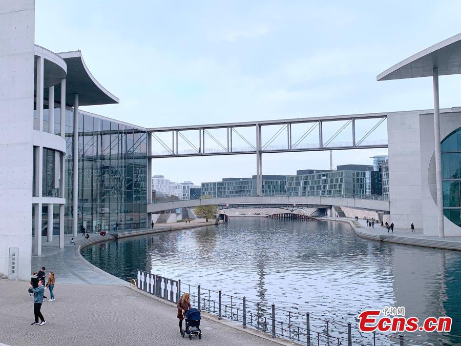 People walk along the banks of the Spree River in Berlin, German, April 1, 2021. (Photo: China News Service/Peng Dawei)