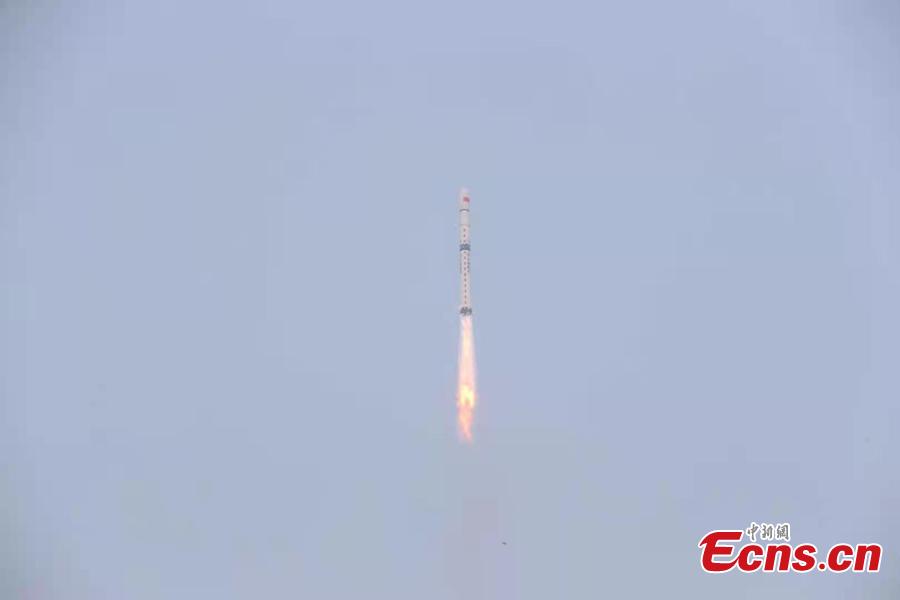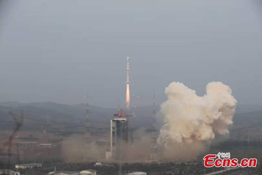 A Long March-4B carrier rocket carrying a satellite, the third of the Shiyan-6 series, blasts off from the Taiyuan Satellite Launch Center in north China's Shanxi Province, April 9, 2021. China successfully sent the experiment satellite into planned orbit. (Photo/China News Service)