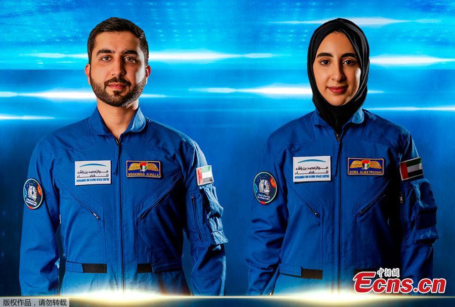 In this undated handout photograph from the United Arab Emirates' state-run WAM news agency, newly named Emirati astronauts Mohammed al-Mulla (left), and Noura al-Matroushi (right), pose for a photo. The United Arab Emirates named the next two astronauts in its space program Saturday, April 10, 2021, including the country's first female astronaut. (Photo/Agencies)