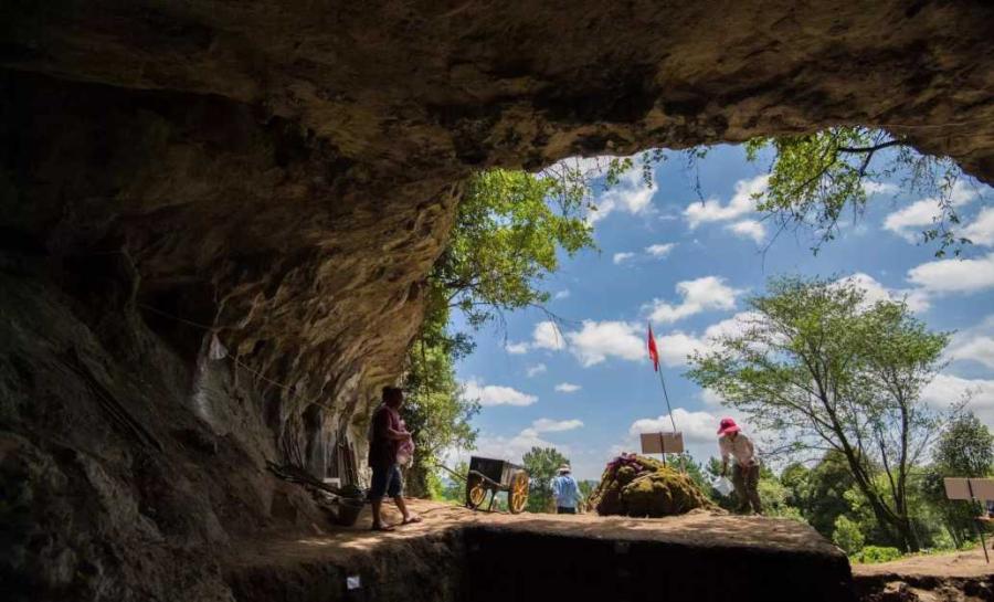 The photo provided by Guizhou Provincial Research Institute of Cultural Relics and Archaeology shows the relic site of Zhaoguo Cave site, Gui'an New Area, southwest China’s Guizhou province. Dating back to 45,000 to 12,000 years, during the Paleolithic to Neolithic period, the findings here provides key clues to the early-stage usage of fire.(Photo provided by Guizhou Provincial Research Institute of Cultural Relics and Archaeology)