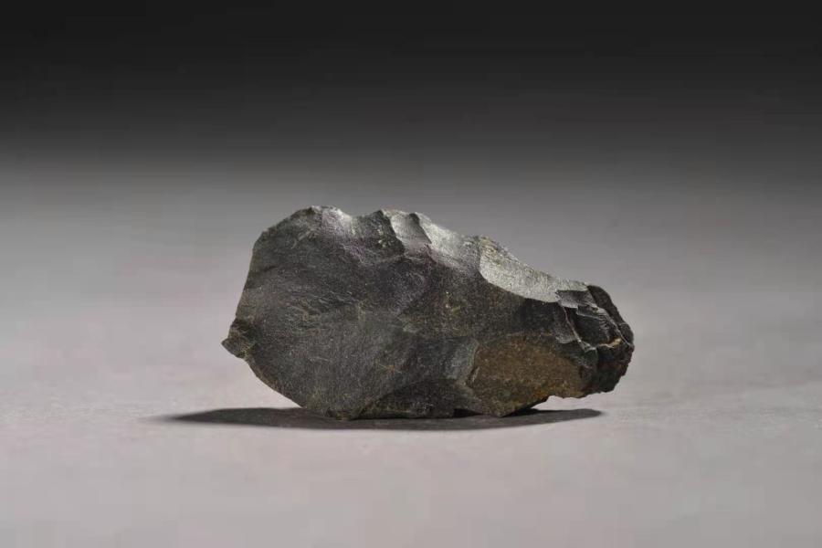 An ancient stone implement unearthed from Zhaoguo Cave site. (Photo provided by Guizhou Provincial Research Institute of Cultural Relics and Archaeology)