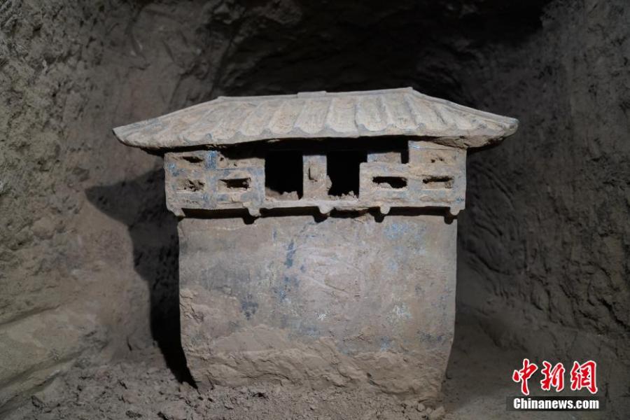 A pottery used to store cereals is seen in Dabaozi Cemetery, northwest China’s Shaanxi Province. (Photo/Provided to China News Service by Shaanxi Academic of Archaeology)