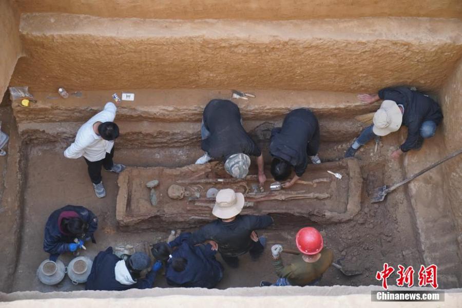 The excavation site is seen in Dabaozi Cemetery, northwest China’s Shaanxi Province. (Photo/Provided to China News Service by Shaanxi Academic of Archaeology)