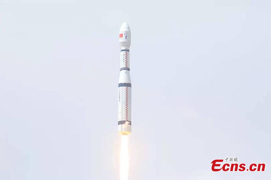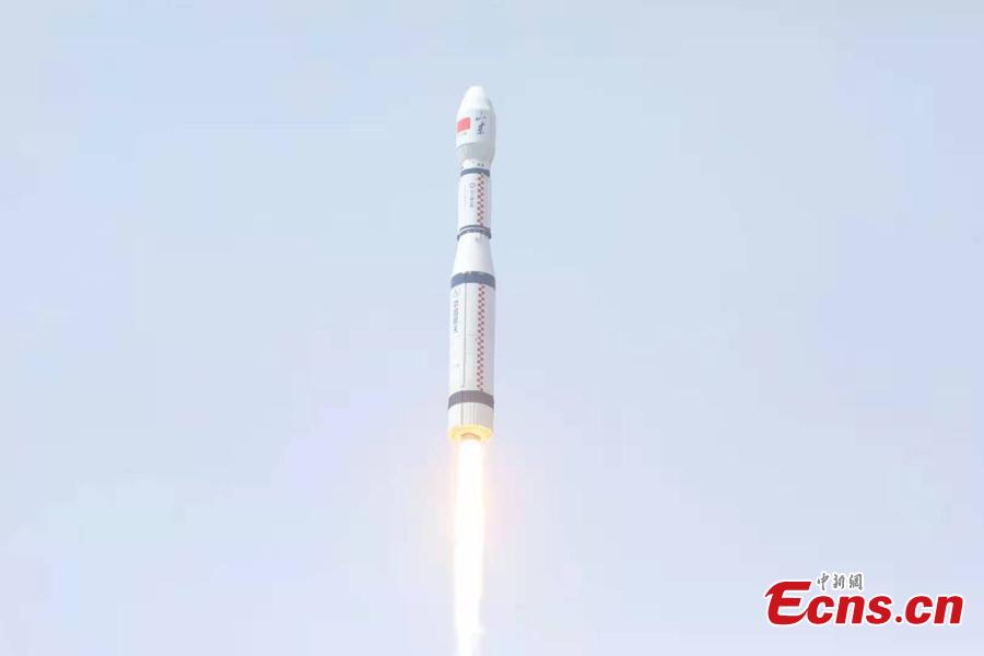 A Long March-6 rocket carrying nine commercial satellites blasts off from the Taiyuan Satellite Launch Center in north China's Shanxi Province at 11:20 a.m. (Beijing Time), April 26, 2021. (Photo: China News Service/Zheng Bin)