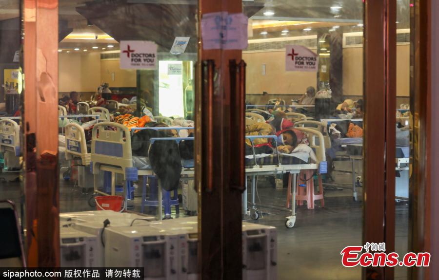 COVID-19 patients seen resting in the COVID-19 isolation ward. A banquet hall temporarily converted to a COVID-19 ward for coronavirus patients. India has recorded the highest single-day spike in coronavirus infection. The report recorded 352,991 new COVID-19 cases and 2,812 people deaths in the last 24 hours amid an oxygen crisis. (Photo/Sipaphoto)