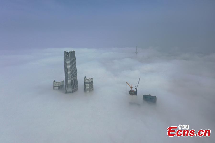 The wonder of advection fog appears in Fushan Bay in Qingdao, Shandong Province, April 27, 2021. (Photo: VCG)