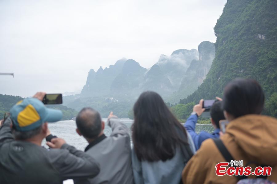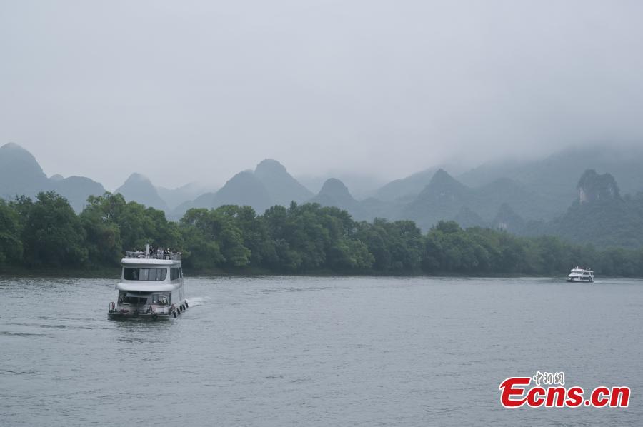 Misty rain covers the Lijiang River in Guilin, Guangxi Zhuang Autonomous Region, April 28, 2021. (Photo: China News Service/Yu Jing)