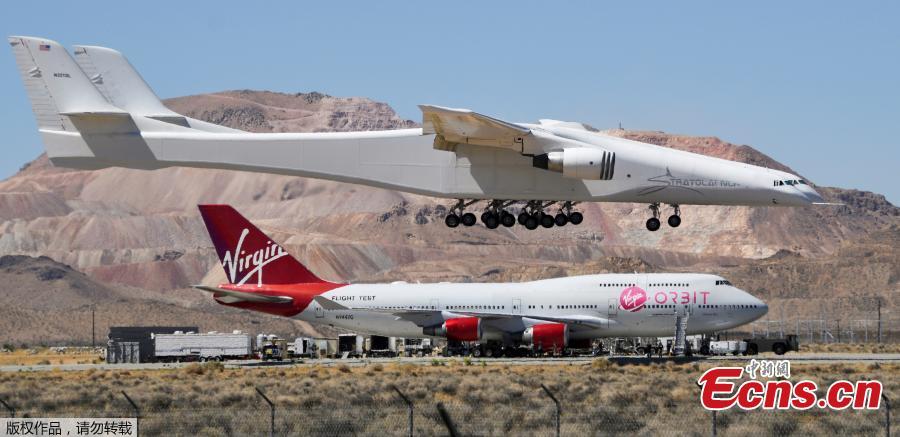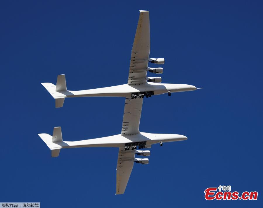The Stratolaunch plane, the world's largest, performs a 4hr test flight in Mojave, California, U.S., April 29, 2021. (Photo/Agencies)