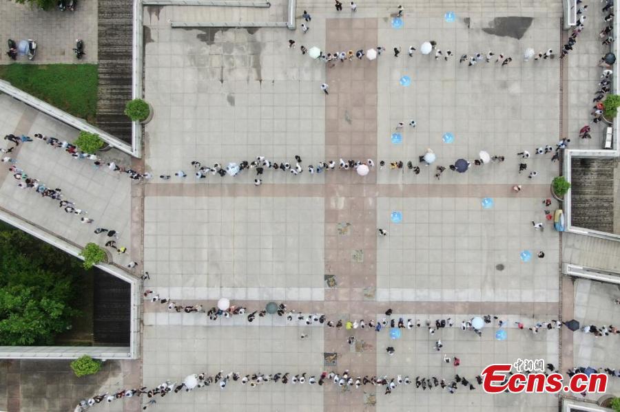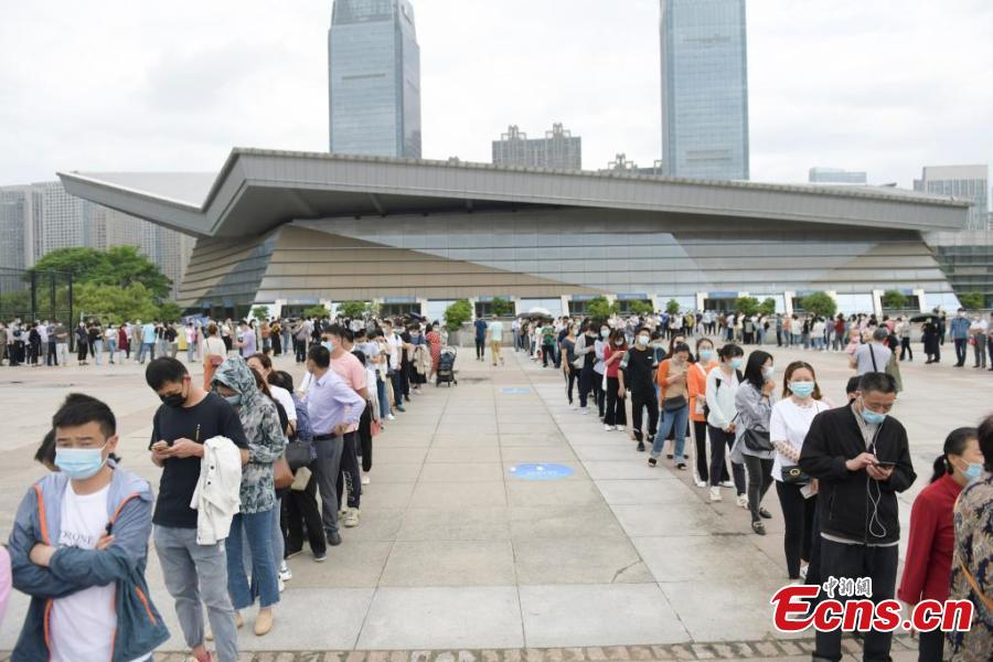 People line up in an orderly manner for COVID-19 vaccination at a vaccination site in the Olympic Sports Center in Shushan District of Hefei City, Anhui Province, May 14, 2021. (Photo/Zhang Yazi)
