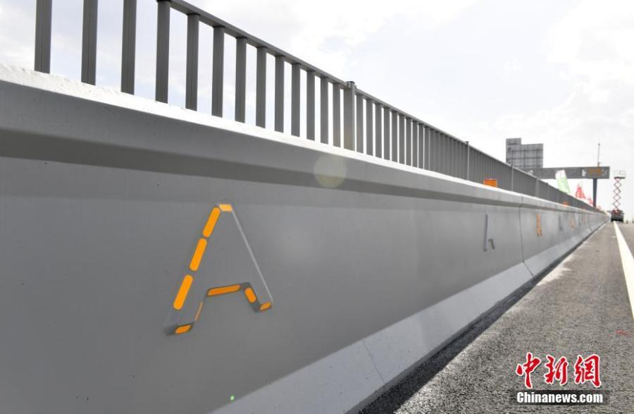 Photo taken on May 27, 2021 shows the safety barrier of the new route of Rongcheng-Wuhai expressway.
