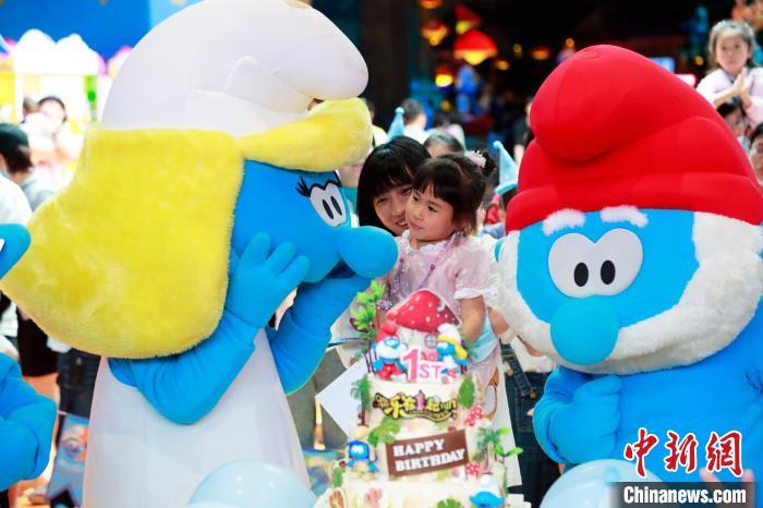 Shanghai's Smurfs-themed park, the first one in the Asia Pacific region, celebrates its one-year-old birthday on May 29, 2021. Many " Smurfs" and children were invited to the birthday party. (Photo: China News Service/Tang Yanjun)