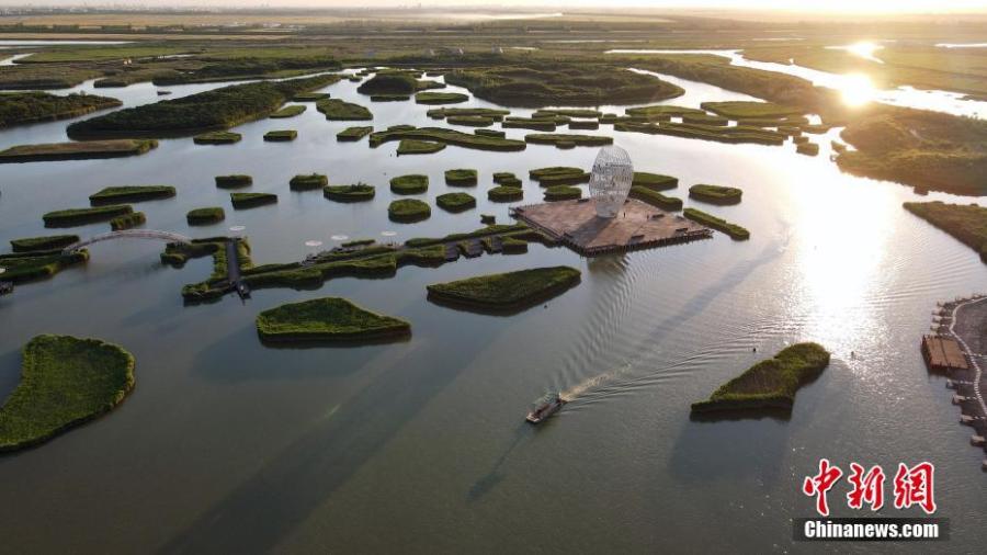 Photo taken on May 28 shows the view of Judian lake in Shuangwangcheng ecological economic park in Shouguang City, Shandong Province. (Photo: China News Service/Mao Jianjun)