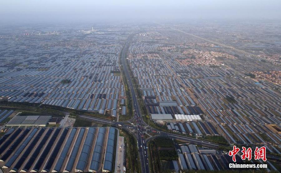 Aerial photo taken on May 29 shows the vegetable planting greenhouse in Shouguang.