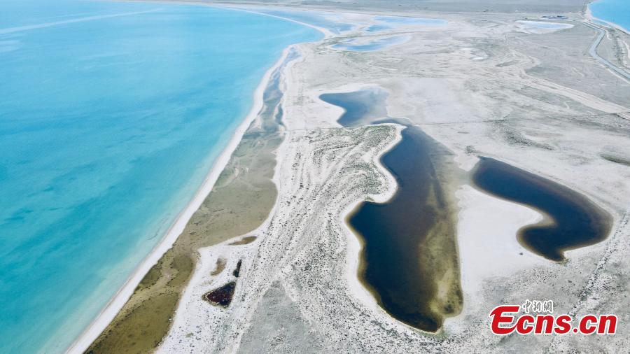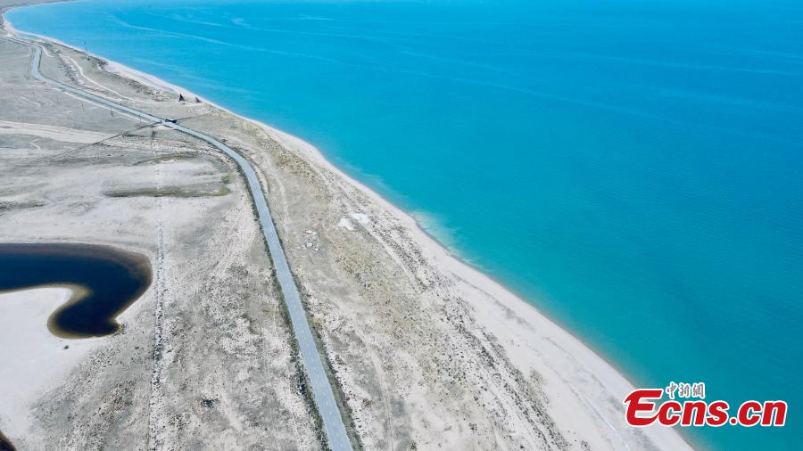 Aerial photo taken on June 7, 2021 shows the picturesque blue ripples at Erlangjian scenic area in Qinghai Lake, Gonghe County, Hainan Tibetan Autonomous Prefecture, Qinghai Province. (Photo: China News Service/Li Jiangning)