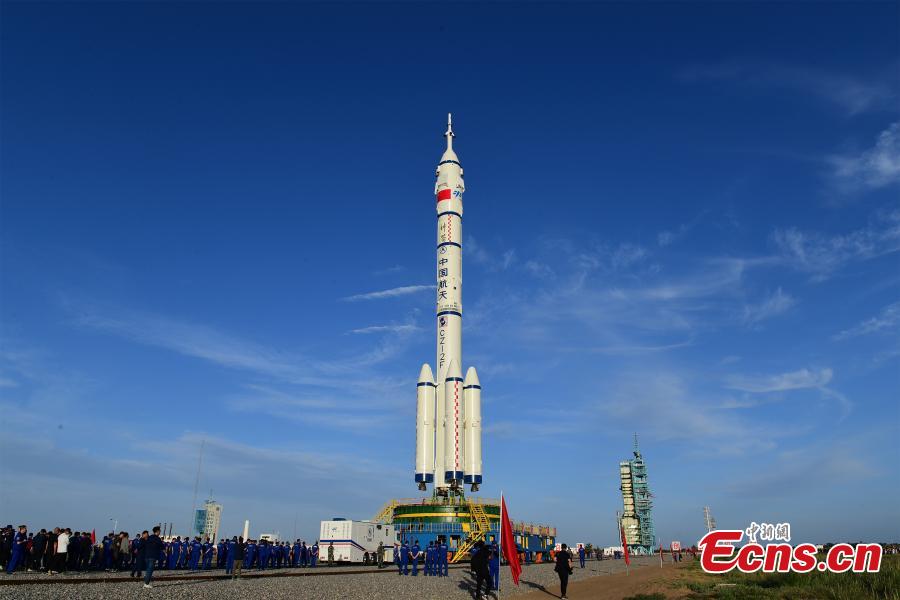 China's Long March-2F Y12 rocket, carrying the Shenzhou-12 spacecraft for manned space mission, sits on the launch pad at the Jiuquan Satellite Launch Center in northwest China, June 9, 2021.