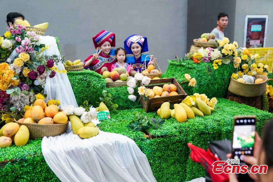 Different mango varieties are displayed at the exhibition in Baise City, Guangxi Zhuang autonomous region, July 18, 2021. (Photo/ Chen Guanyan)