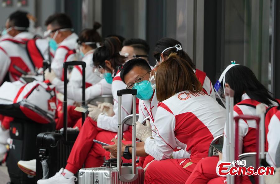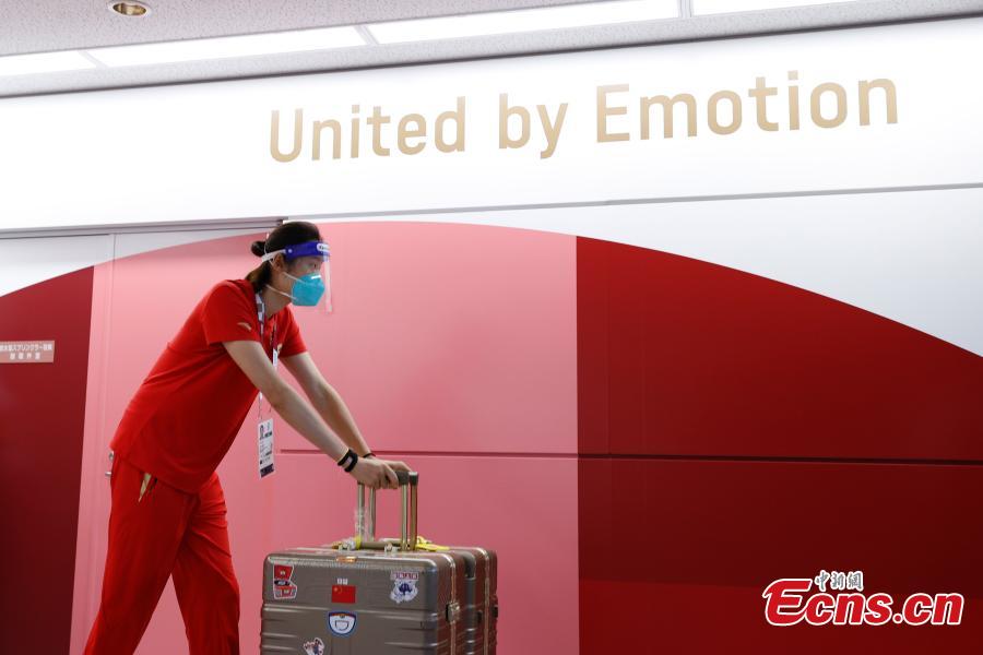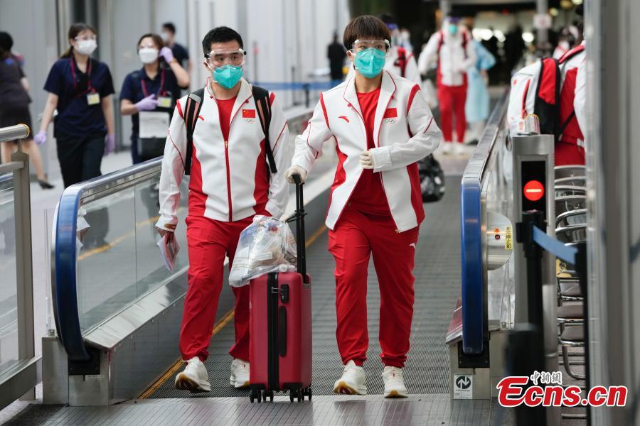 Members of Chinese Olympic delegation arrive at the Narita airport in Tokyo, Japan, July 18, 2021. (Photo: China News Service/ Du Yang)