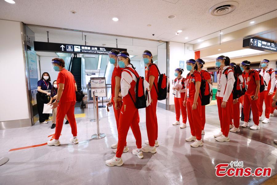 Chinese women's volleyball team arrives at the Narita airport in Tokyo on July 19, 2021. (Photo: China News Service/ Han Haidan)