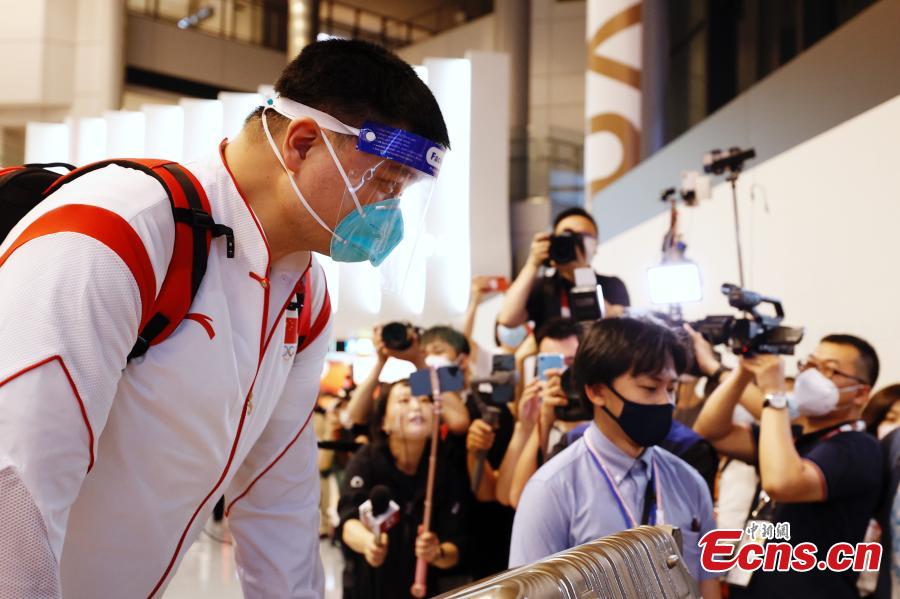 Yao Ming, team leader of Chinese women's basketball team, arrives at the Narita airport in Tokyo, Japan, July 19, 2021. Chinese women's basketball team and coaching team arrived in Tokyo on Monday. (Photo: China News Service/ Han Haidan)