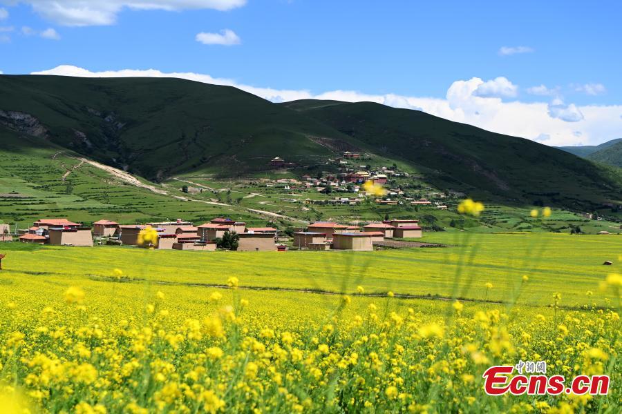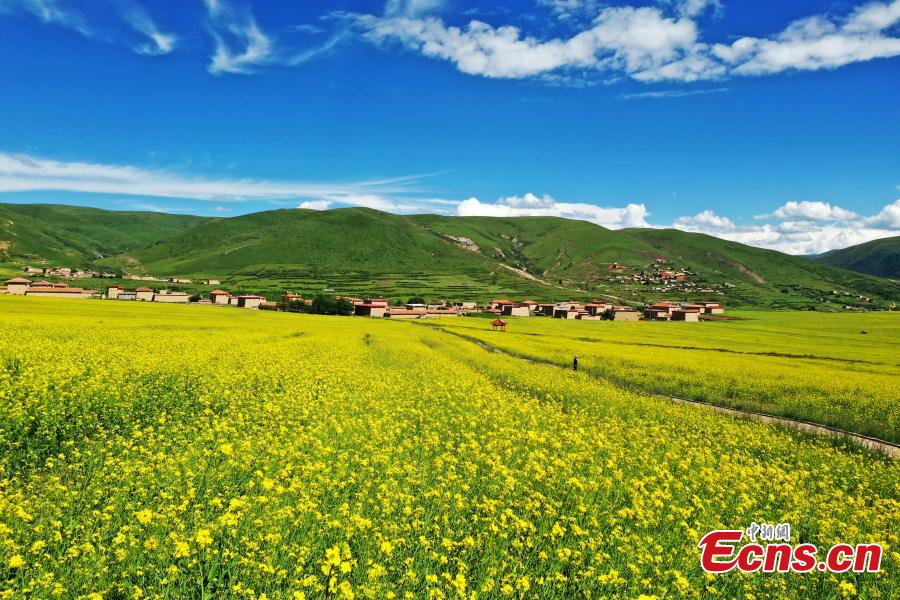 People visit the sea of rape flowers blooming in the plateau of Aba Tibetan and Qiang autonomous prefecture, Sichuan Province, July 21, 2021. (Photo/ An Yuan)