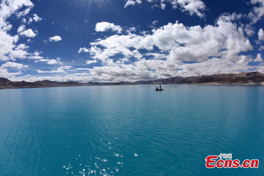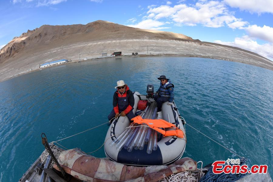 A team affiliated to China's scientific expedition of the Tibetan Plateau conducts research at Jieze Caka, a lake located at 4, 500 meters altitude in the Ali Prefecture, southwest China's Tibet Autonomous Region, July 21, 2021. (Photo: China News Service/ Sun Zifa)