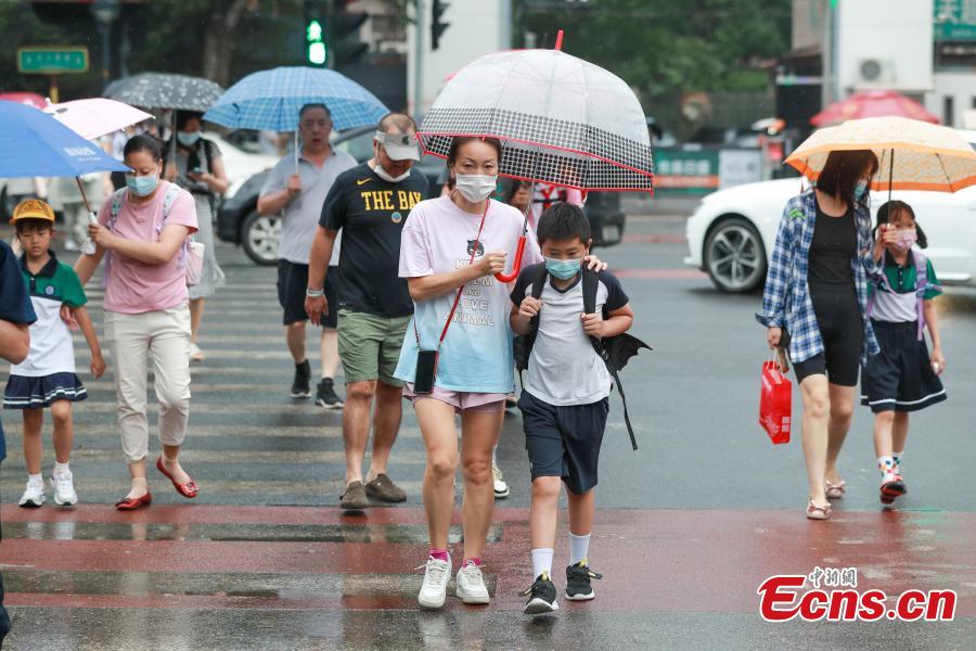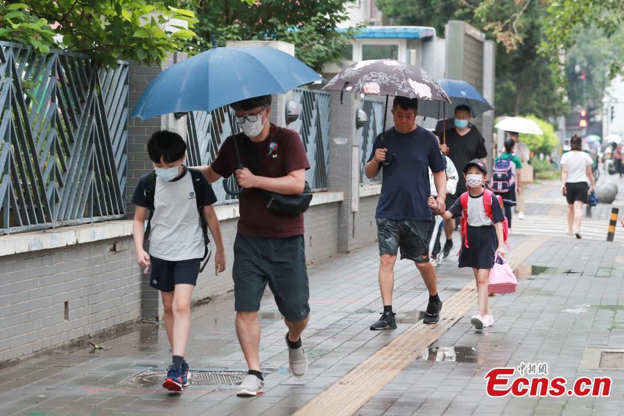 Students accompanied by their parents return to school in Beijing, June 27, 2022 (Photo: China News Service/Jia Tianyong)