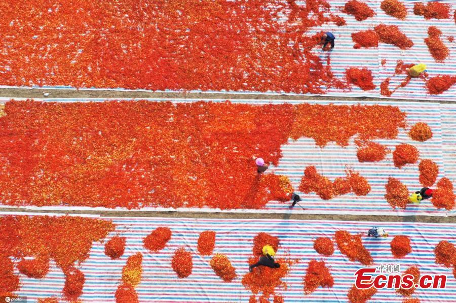 Villagers dry chili peppers in Gucheng town of Haozhou city, central China's Anhui Province. China marked the fifth Chinese farmers' harvest festival on Friday. (Photo/ICphoto)