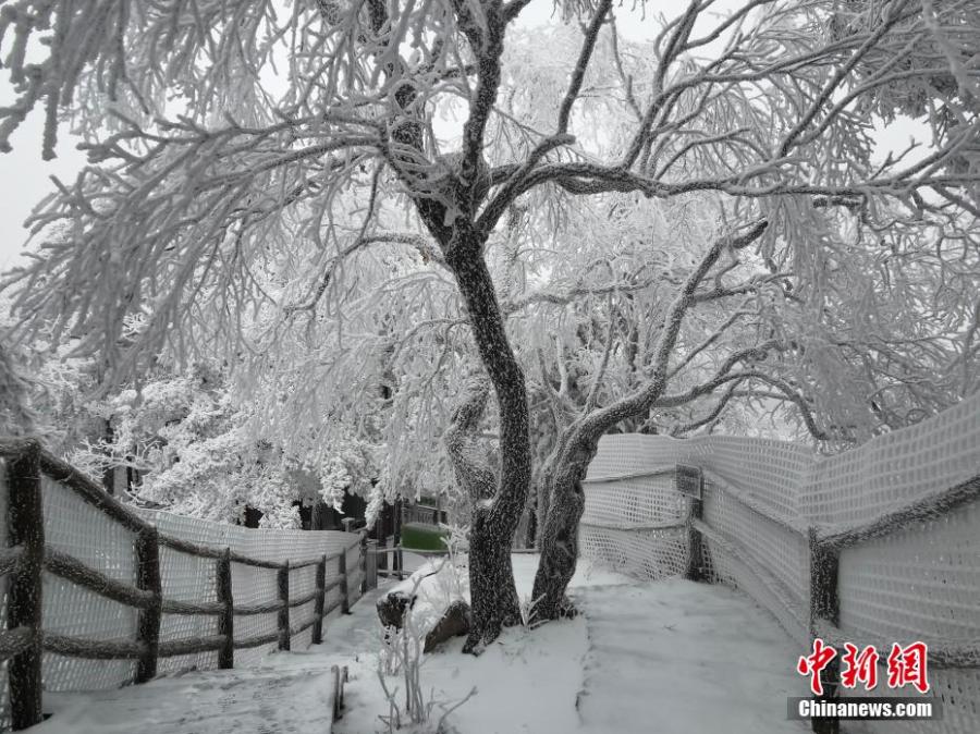 Gorgeous rime turns Laojie Ridge into white wonderland in central China's Henan Province, Feb. 13, 2023. (Photo: China News Service/Zhang Ningfeng)