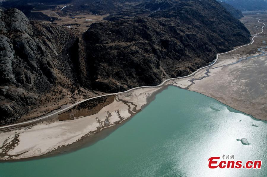 Picturesque winter scenery of a half frozen Ranwu Lake surround by snow-covered mountain in the distance, southwest China's Tibet Autonomous Region, Feb. 16. 2023. (Photo: China News Service/Li Lin)
