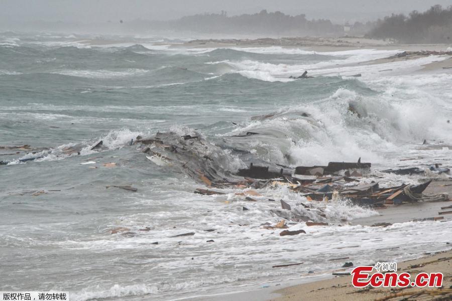 The wreckage from a capsized boat washes ashore at a beach near Cutro, southern Italy, Feb. 26, 2023. (Photo/Agencies)