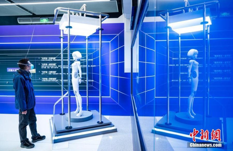 People view exhibits during a metaverse exhibition at Shougang Park in Beijing, Feb. 27, 2023. (Photo: China News Service/Hou Yu)