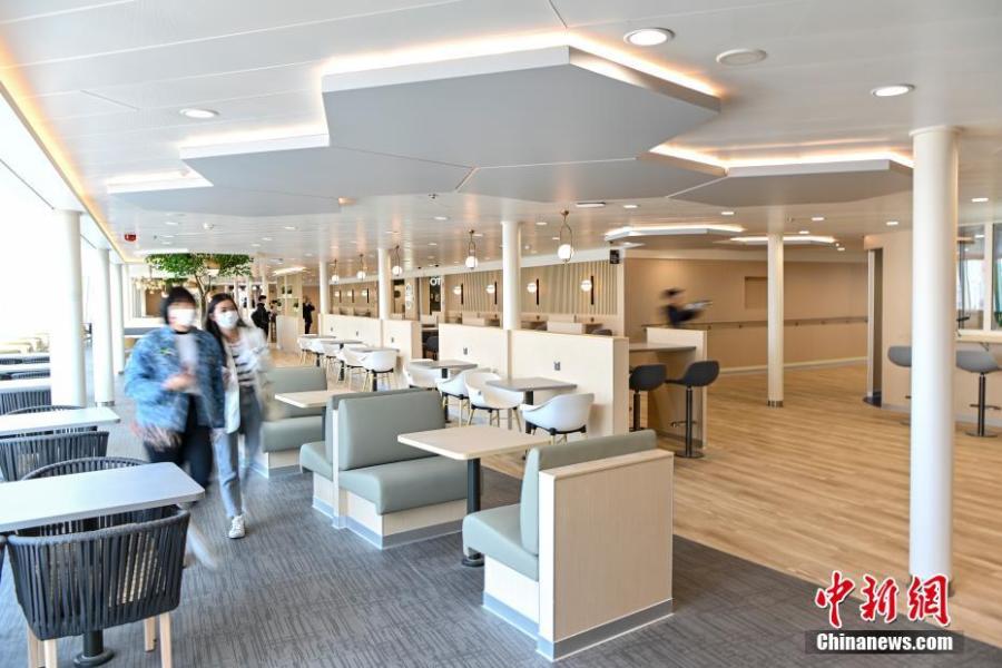 Photo shows the interior view of the world's first large-capacity batter hybrid ro-ro passenger ship in Guangzhou, south China's Guangdong Province, Feb. 28, 202. (Photo: China News Service/Chen Jimin)