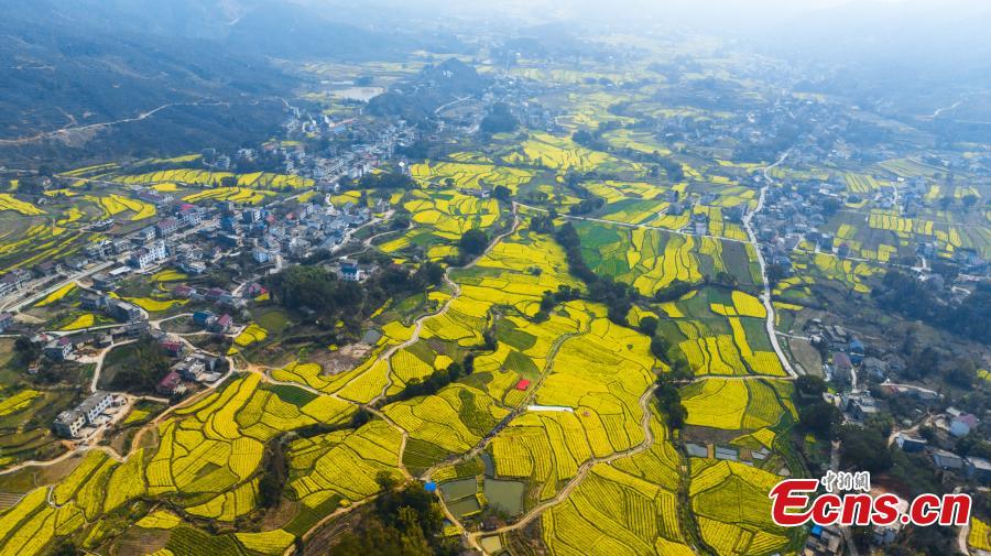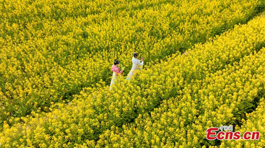 Blooming cole flowers attract visitors in Ji'an, east China's Jiangxi Province. (Photo: China News Service/Li Xiaoming)